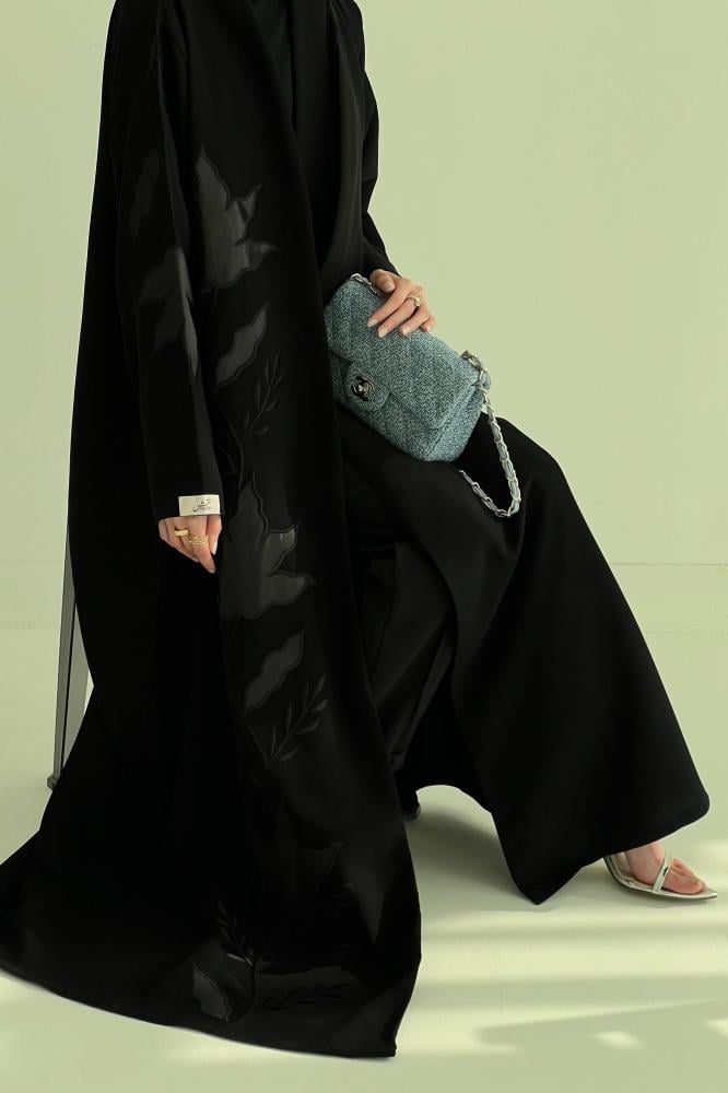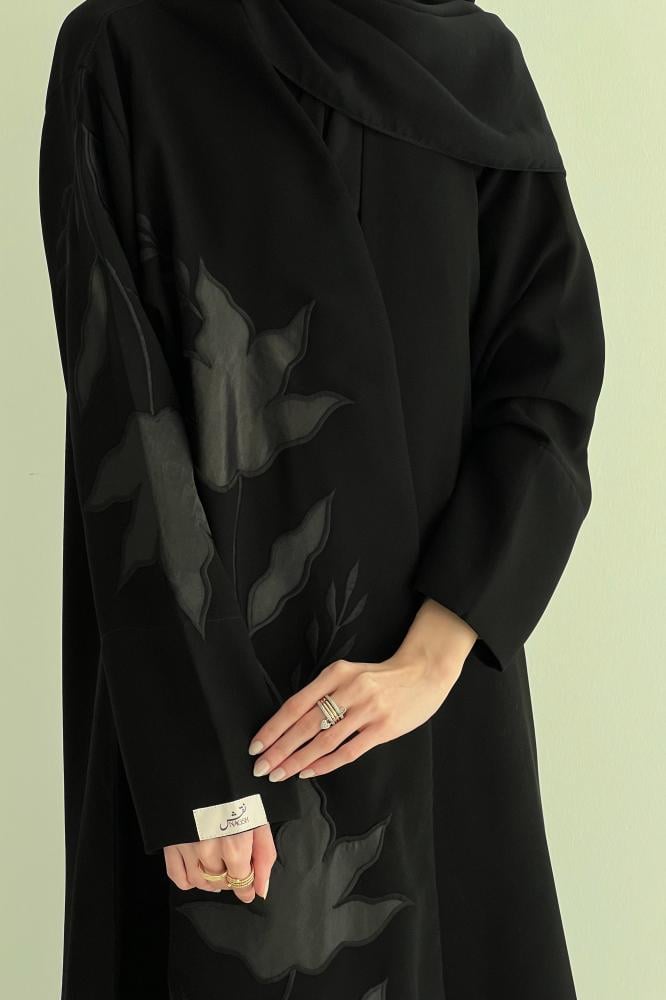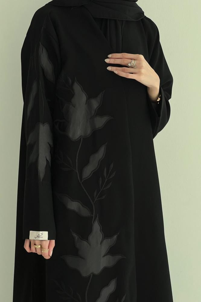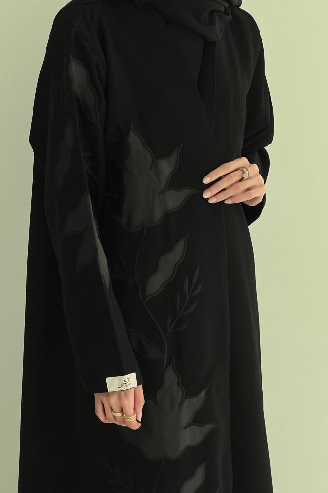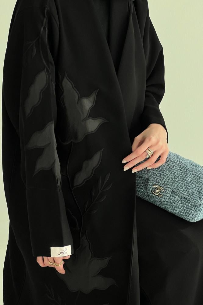 تفاصيل العباية : تطريز يدوي لون أسود