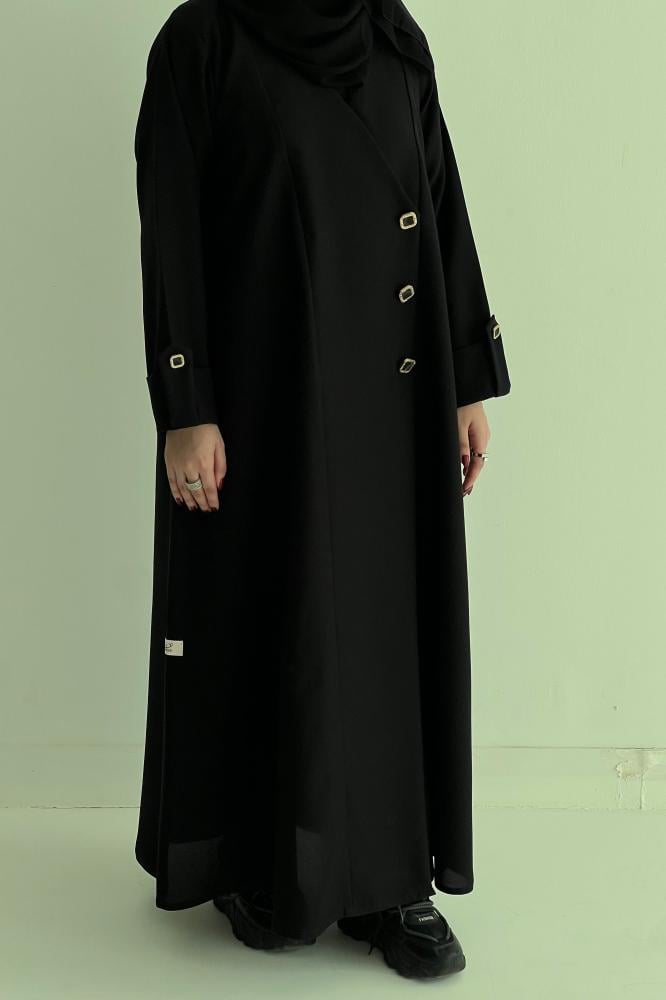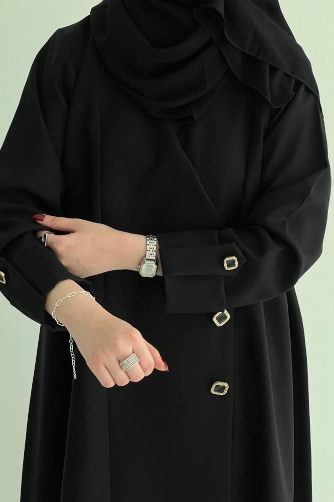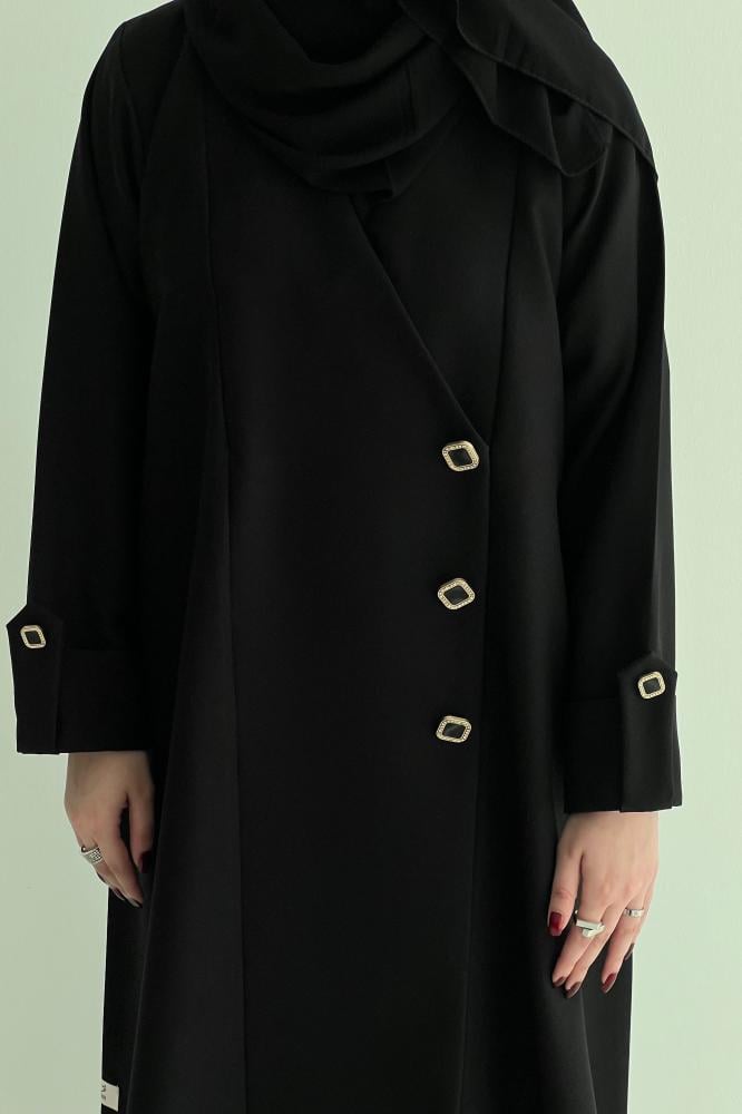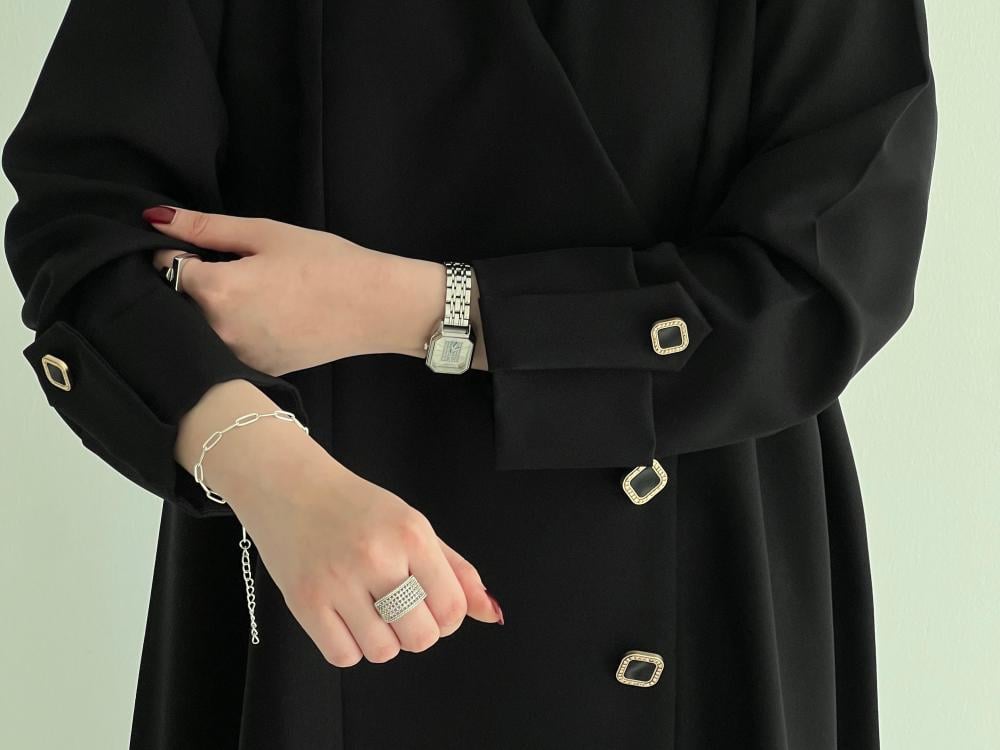 تفاصيل العباية : عملية ورسمية ، بإمكانك اختيار لون الأزرار حسب طلبك مع إضافة جيوب مخفية